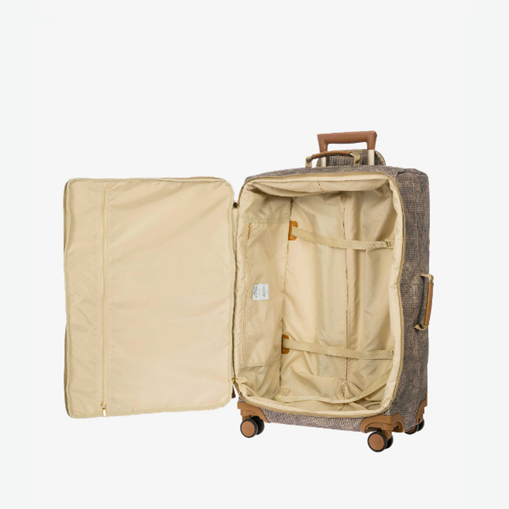 Этот чемодан среднего размера (71 см), входящий в коллекцию BXL, изготовлен из прочного переработанного нейлона и имеет жесткую и легкую конструкцию. Основное отделение открывается на двустворчатую молнию. Два передних кармана на молнии, внутренние карманы и компрессионные ремни обеспечивают оптимальную организацию. Бесшумные вращающиеся на 360° колеса гарантируют плавное движение во всех направлениях и утоплены, чтобы максимально увеличить вместительность чемодана. Мягкие ручки для переноски, прочные алюминиевые трубки и эргономичная выдвижная ручка обеспечивают комфорт. Он поставляется со встроенным держателем идентификационной бирки и кольцами для закрытия багажного замка (продаются отдельно). Выдающаяся отделка из натуральной кожи и детали логотипа Bric обогащают чемодан.