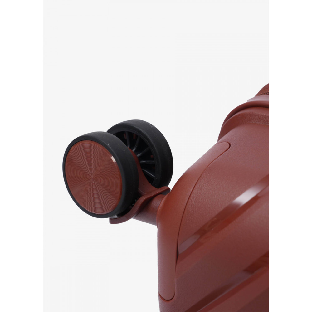 Ультра лёгкий материал 100% полипропилен. Плавная бесшумная 8-колесная система. Комбинированный замок TSA secyre. Выдвижная алюминиевая система тележки. Внутри две секции, одна с фиксирующим ремнем, вторая с вместительным карманом, на молнии. Один из карманов изнутри, выполнен из водоотталкивающей ткани. В среднем чемоданы, на крышке, есть карманы для мелких вещей (косметики, средств гигиены и т.д.) Стильный дизайн, классические цвета. Имеет увеличение объема.