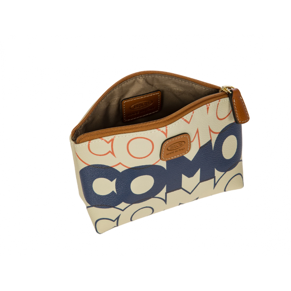 Цей невелика косметичка з колекції Como була розроблена та виготовлена в Італії. Виготовлена з м'якого матеріалу з тисненою поверхнею, вона водостійка та легко чиститься. Закривається на блискавку, внутрішня частина обшита тканиною, а зовнішня частина оздоблена деталями зі справжньої шкіри.