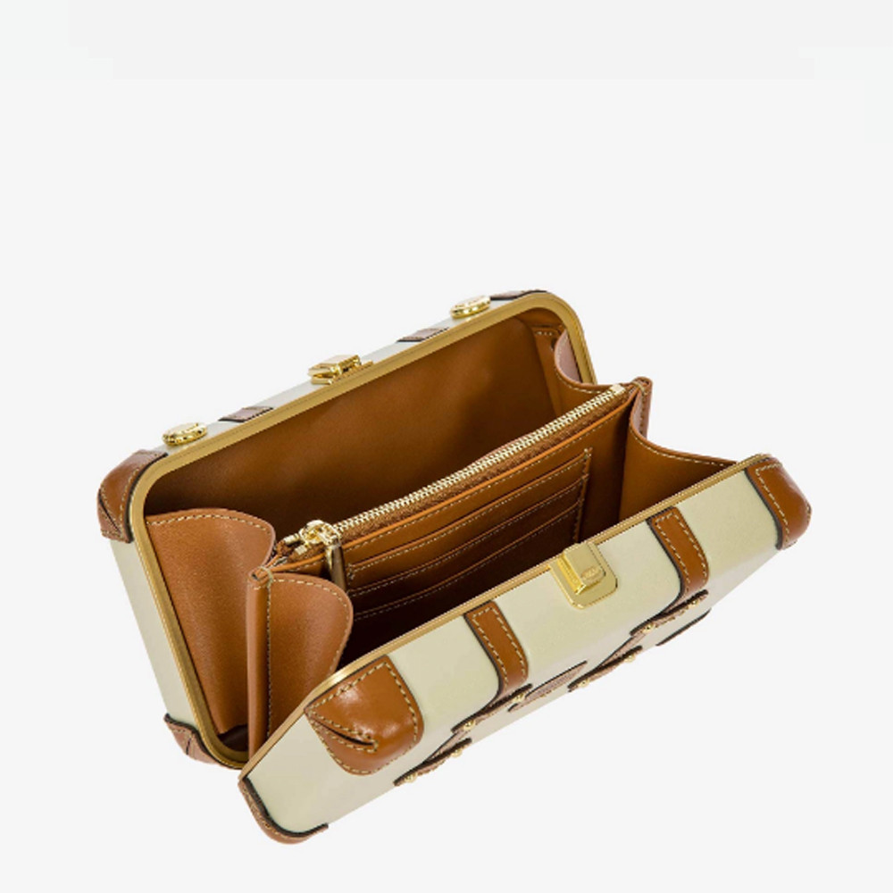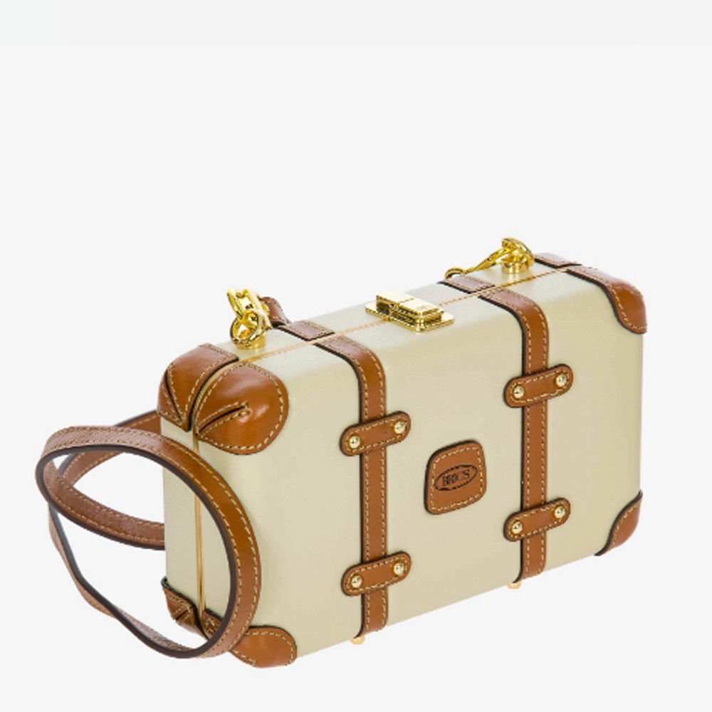 Сумка Bellagio Legacy — це маленький символ того, як досконалість ручної роботи можна поєднати з елегантністю. Створений для створення вишуканого вигляду, він нагадує культовий дизайн валіз-візків Bellagio. У створенні сумки Bellagio Legacy приділяється ретельна увага до деталей, від вставок зі справжньої шкіри до золотистих металевих заклепок. Виготовлений із надлегкої полікарбонатної оболонки, він розроблений для елегантного зберігання особистих речей. Його можна носити в руці, як на скрині, або зручно носити на плечі завдяки м’якому тонкому шкіряному ремінцю, який регулюється та знімається. Зсередини має два відкритих відділення, розділених кишенею на блискавці. Металева застібка прикрашена тисненим логотипом Bric.