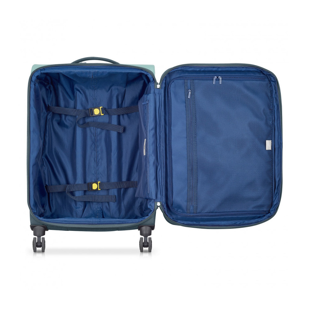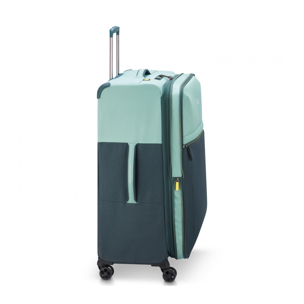 Валіза серії Delsey BROCHANT 3.0 2257821(великий). Цей багаж оснащений кодовим замком TSA для додаткової безпеки під час подорожі літаком. Це дозволяє вам захистити свій багаж за допомогою особистого коду, а Американське управління з безпеки на транспорті (TSA) може перевірити ваш багаж, не пошкодивши його, за допомогою спеціального ключа. Brochant 2.0 має 4 дуже маневрених і тихих подвійних колеса. Міцні та багатоспрямовані, вони були спеціально розроблені, щоб полегшити вагу багажу. Подорожувати світом і подорожувати аеропортами приносить задоволення завдяки комфорту водіння. Має велику центральну секцію з фіксуючими ременями. Не бійтеся не закрити валізу! Валіза має функцію збільшення обсягу! Виготовлений з екологічно чистої, зносостійкої полегшеної тканини (ПЕРЕРОБЛЕНИЙ ПОЛІЕСТЕР) з тефлоновим покриттям та елементами гумового оздоблення.